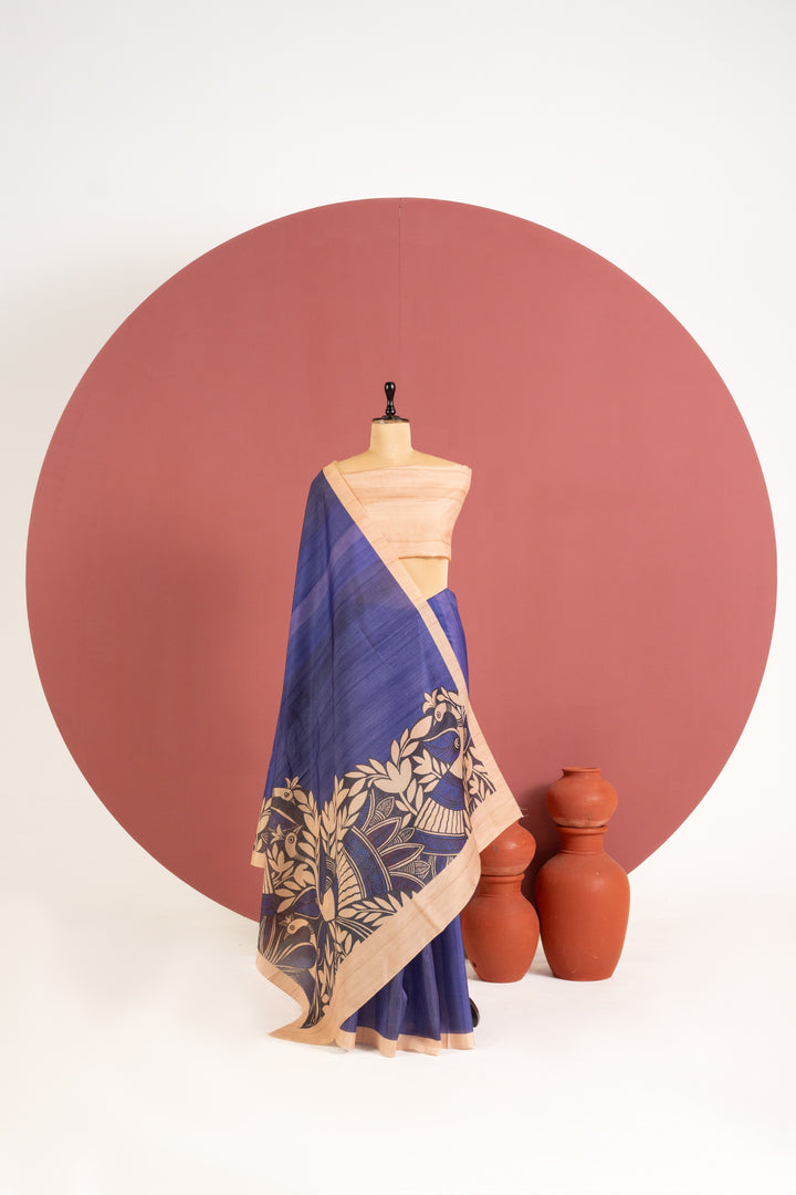Cosmos Silk Saree With Kalamkari Print Saree - BLUE