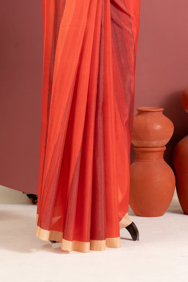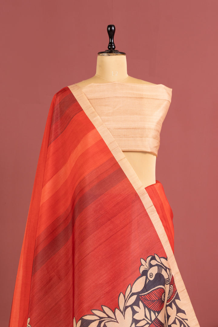 Cosmos Silk Saree With Kalamkari Print Saree - RED