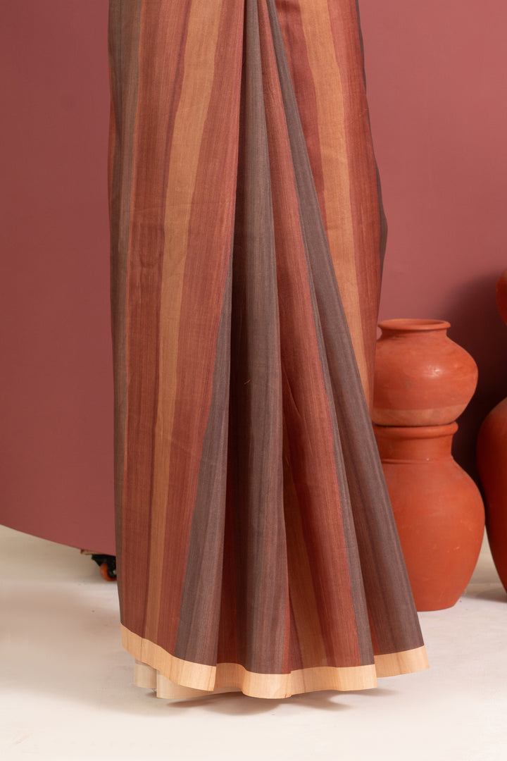 Cosmos Silk Saree With Kalamkari Print Saree - COFFEE