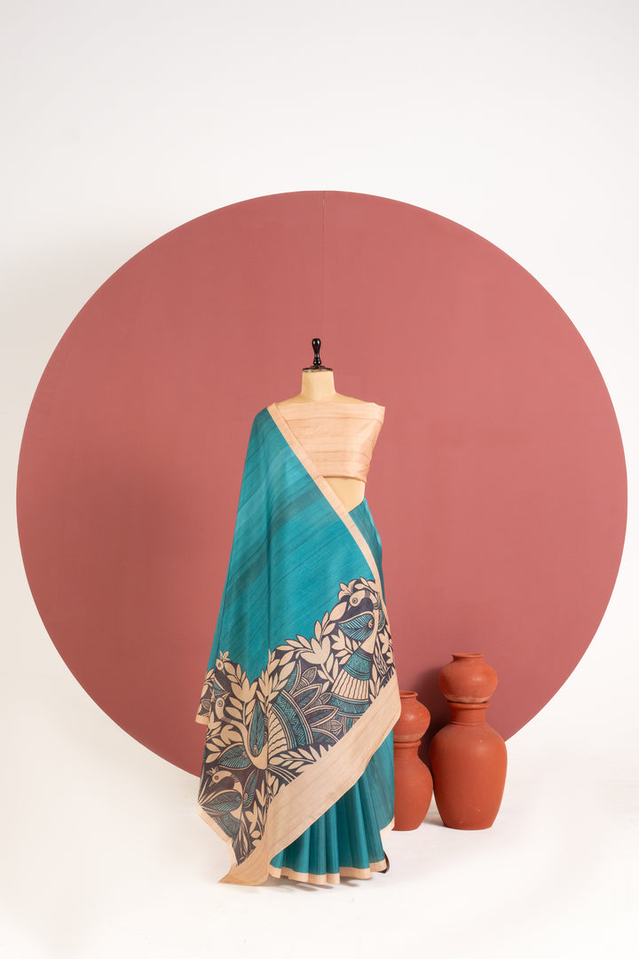 Cosmos Silk Saree With Kalamkari Print Saree - FIROZI