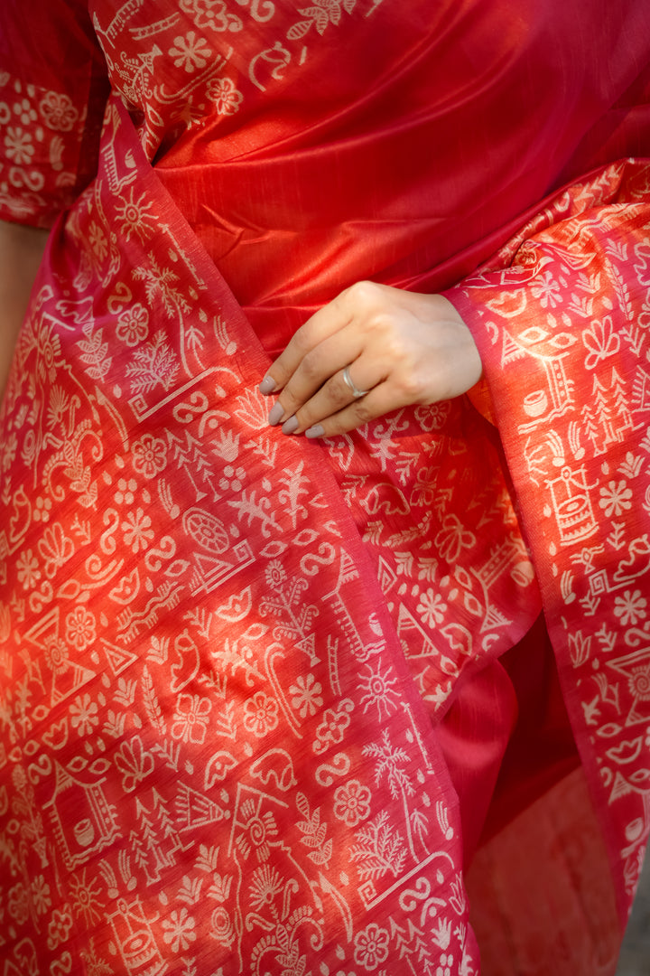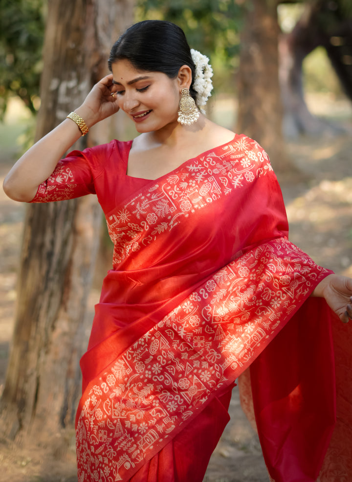 Handloom raw silk saree - RED