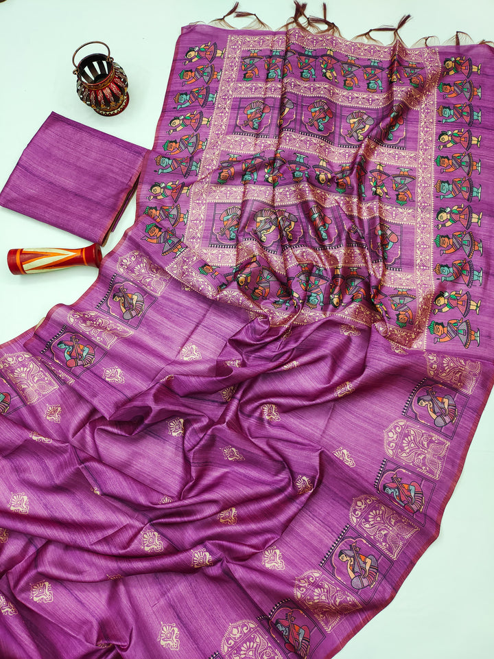 Madhubani Printed Saree - WINE