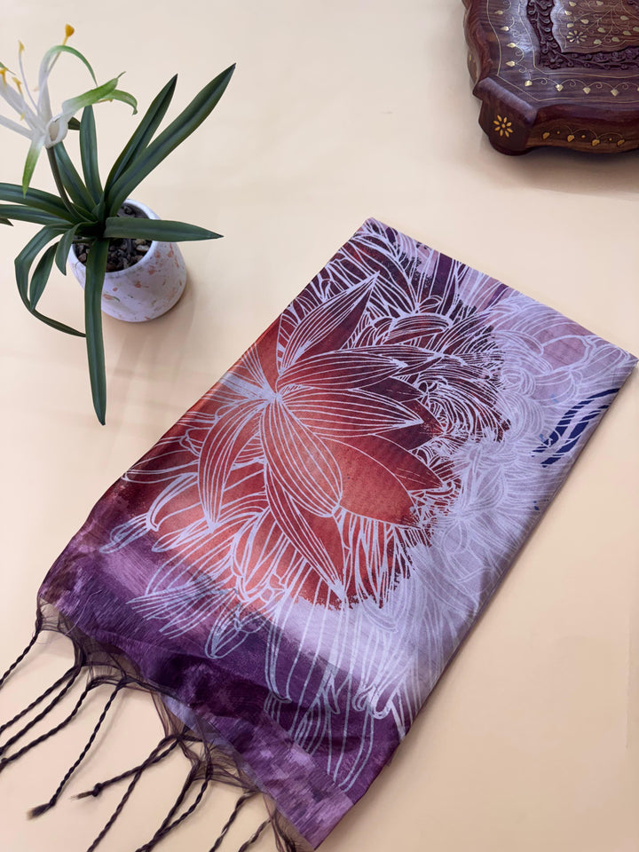Mallai Silk Floral Print Saree - WINE