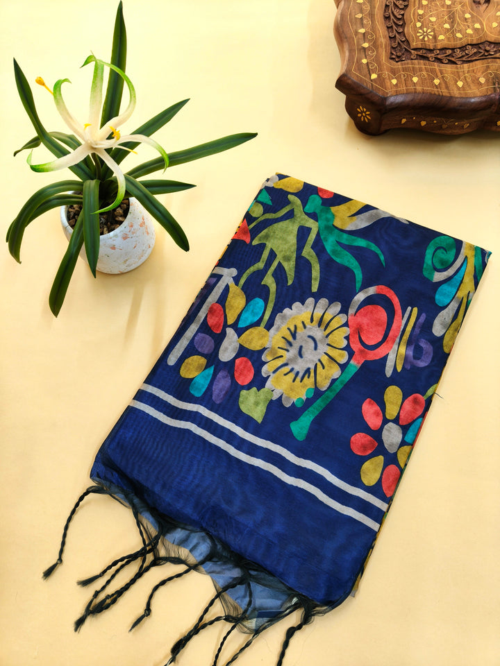 Mallai Silk Saree With Abstrst Pallu - BLUE