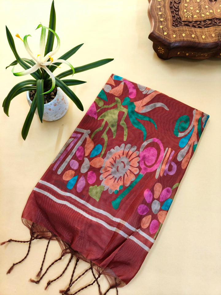 Mallai Silk Saree With Abstrst Pallu - MAROON