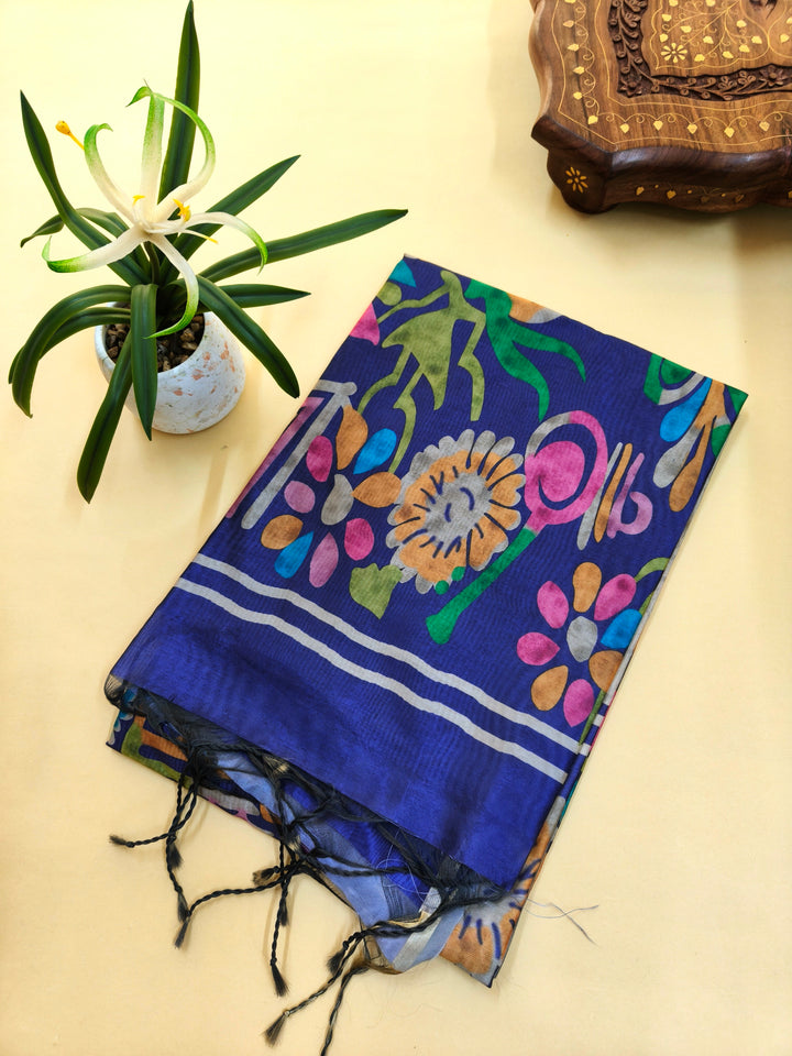 Mallai Silk Saree With Abstrst Pallu - R.BLUE