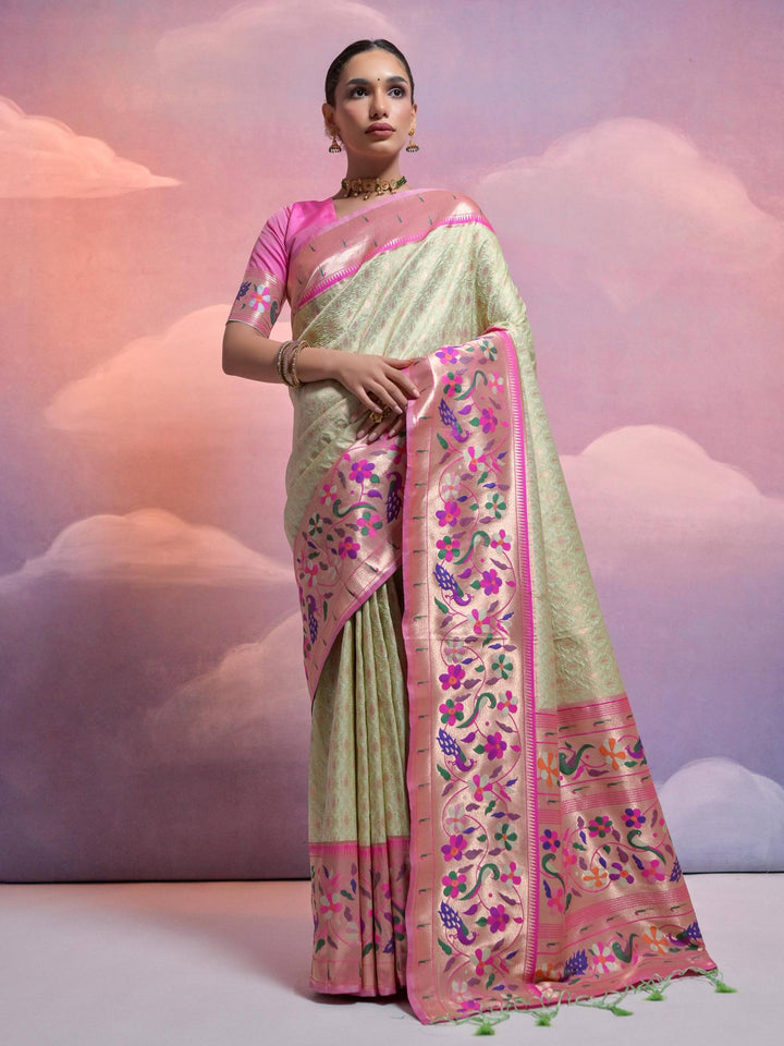 MEHNADI COLOUR PAITHANI BIG BORDER WOVEN SAREE