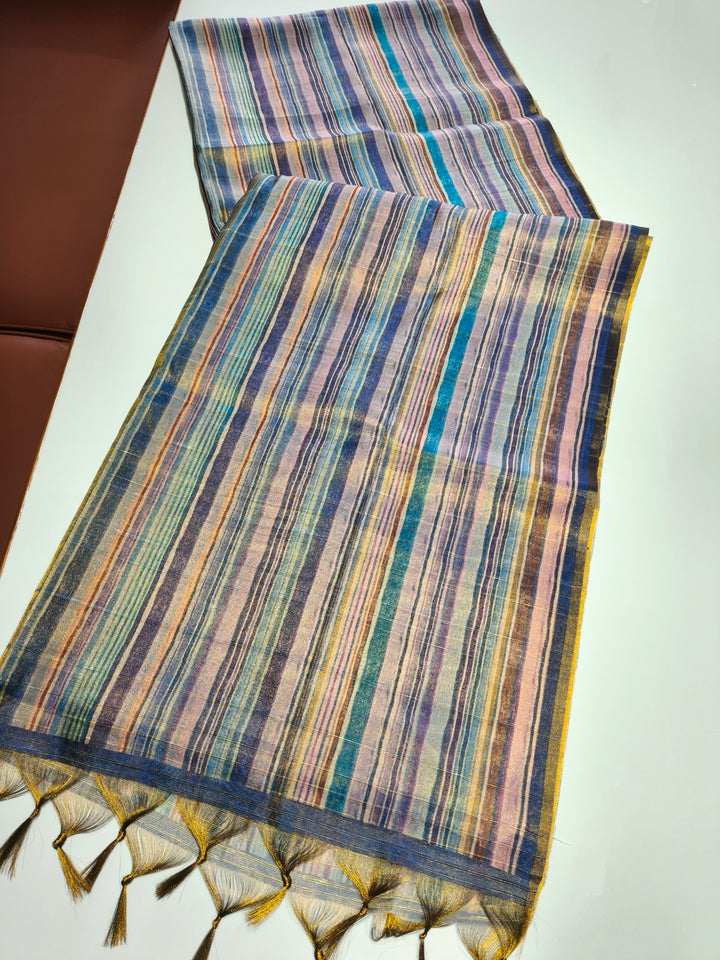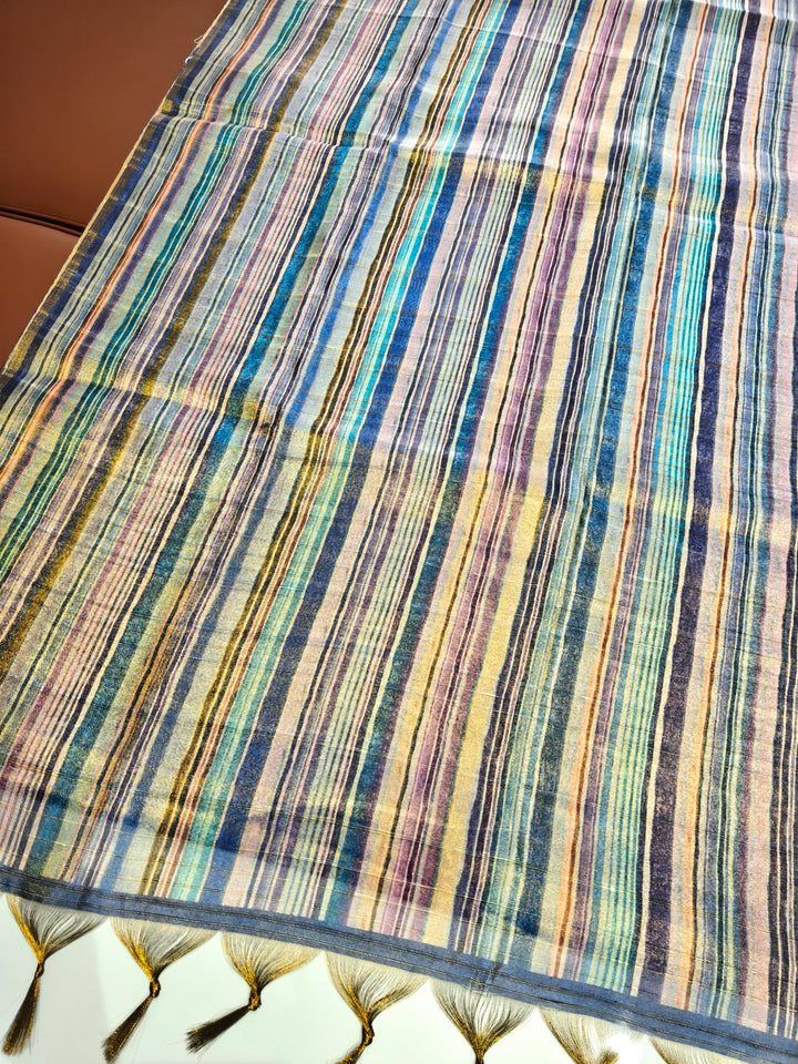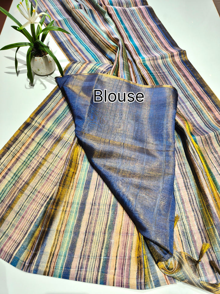 Tissue Tussar Zari Multicolor Saree - BLUE