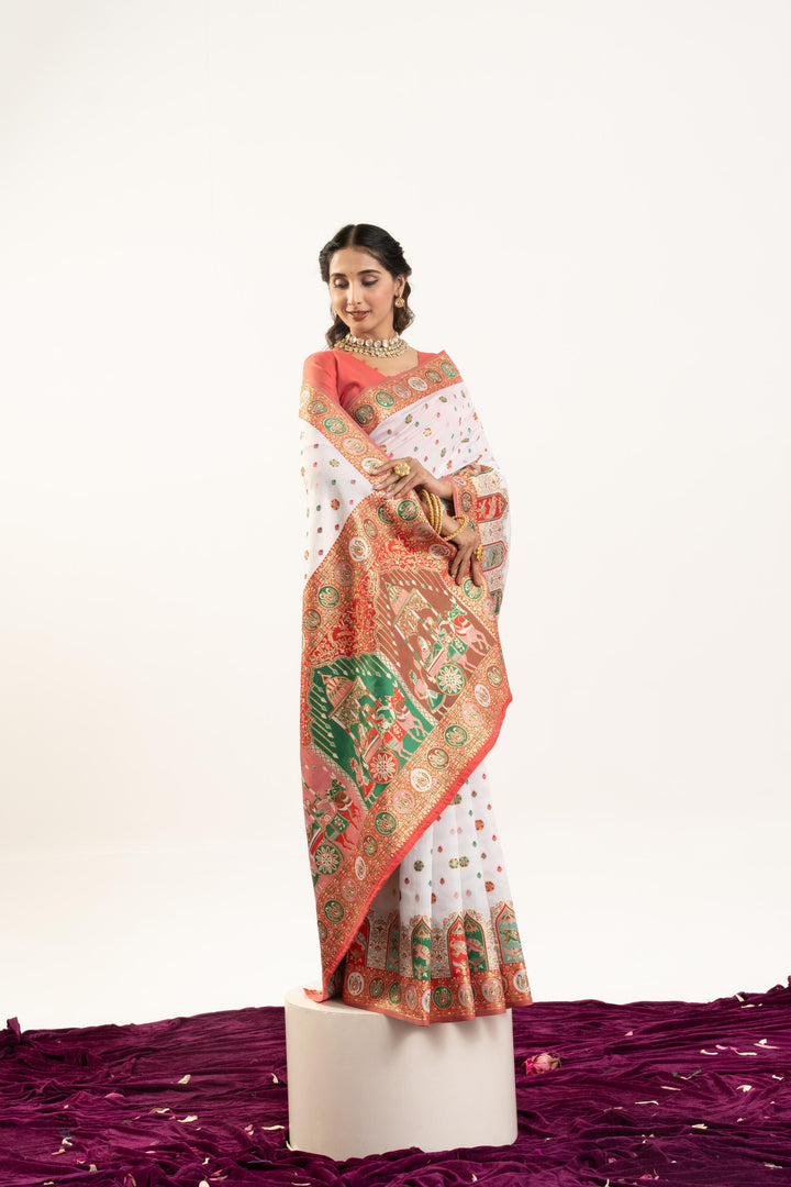 PURE SOFT PASHMINA SILK SAREE - WHITE