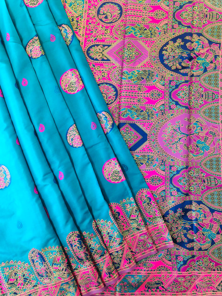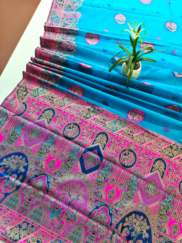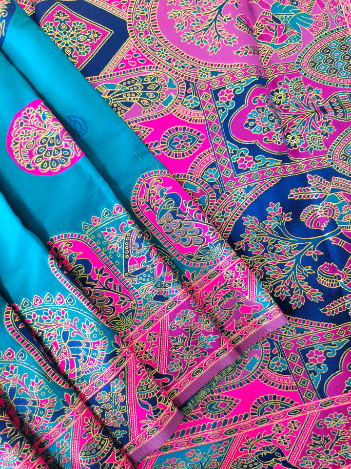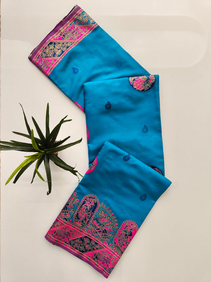 PURE SOFT RAJWADI PASHMINA SILK SAREE - SKY BLUE