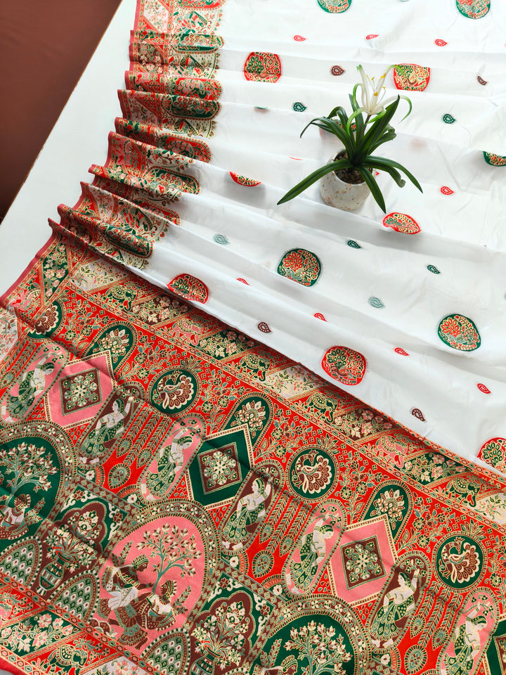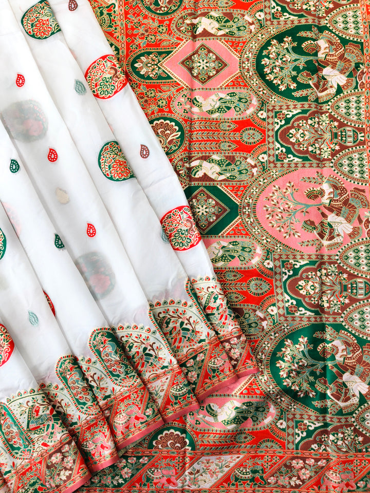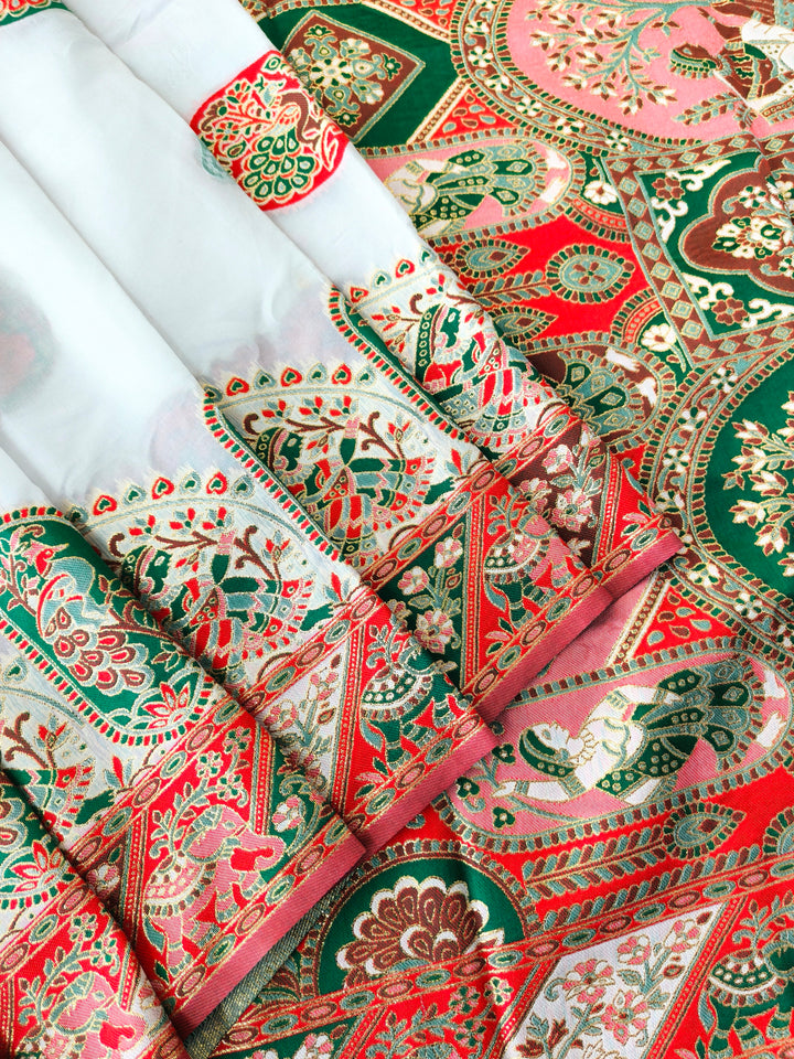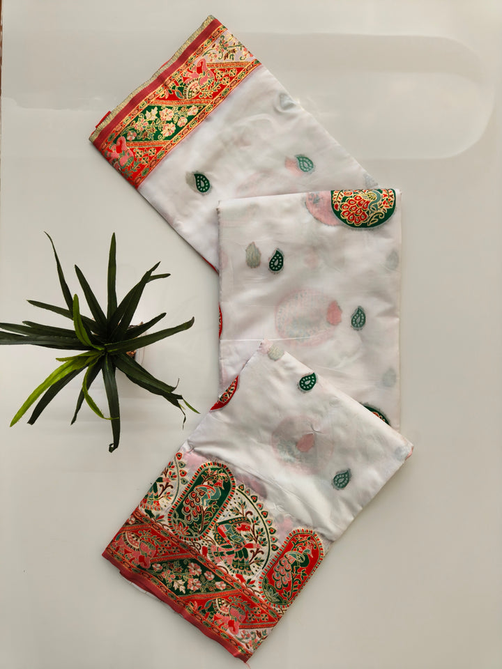 PURE SOFT RAJWADI PASHMINA SILK SAREE - WHITE