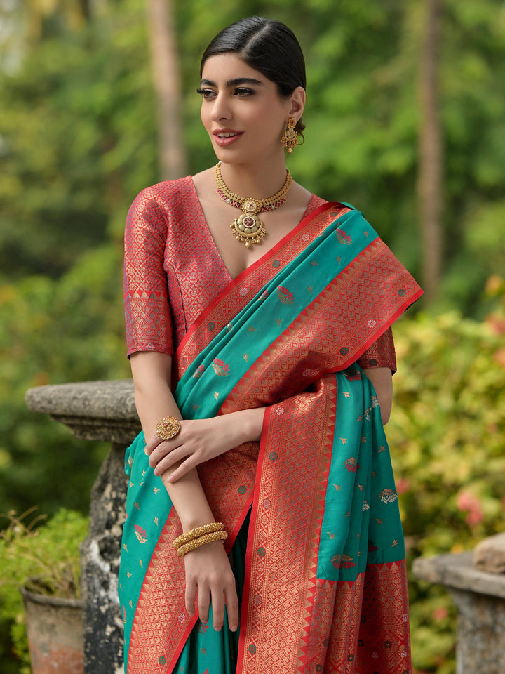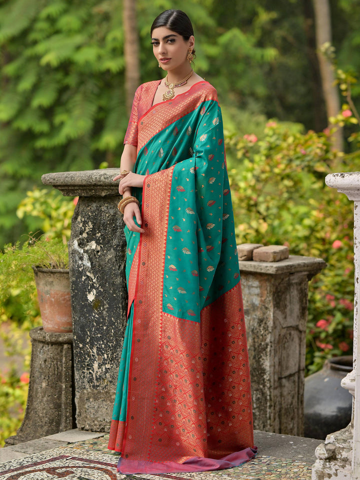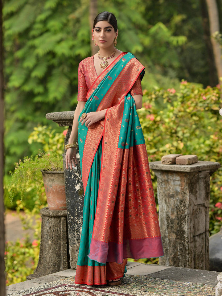 RAMA BANARASI SILK SAREE WITH CONTRAST COLOUR
