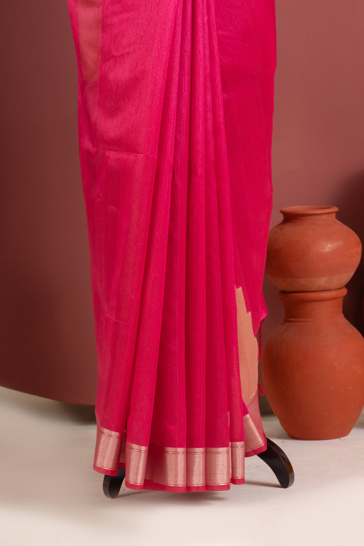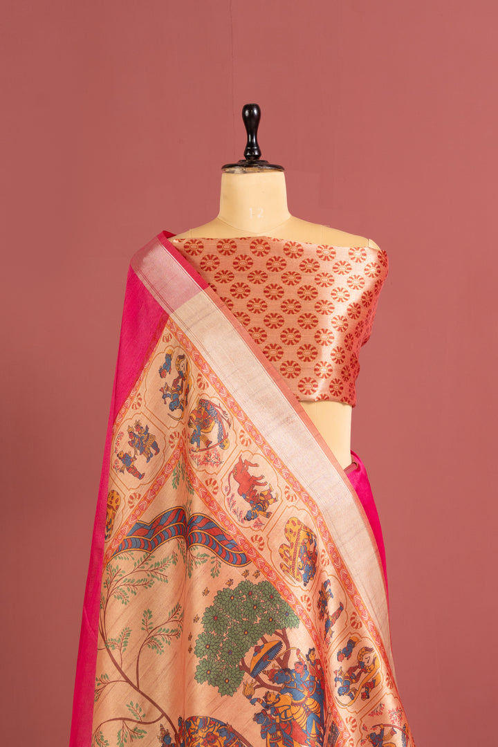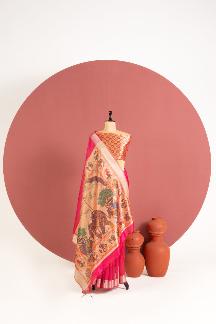 Soft Raw Silk Kalamkari Printed Pallu - PINK