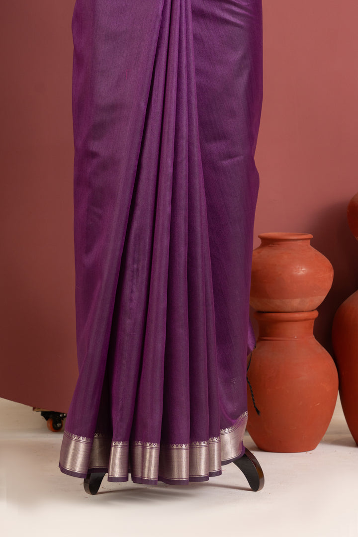 Soft Raw Silk Kalamkari Printed Pallu - PURPLE