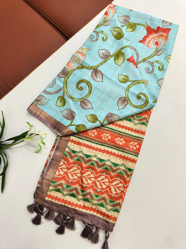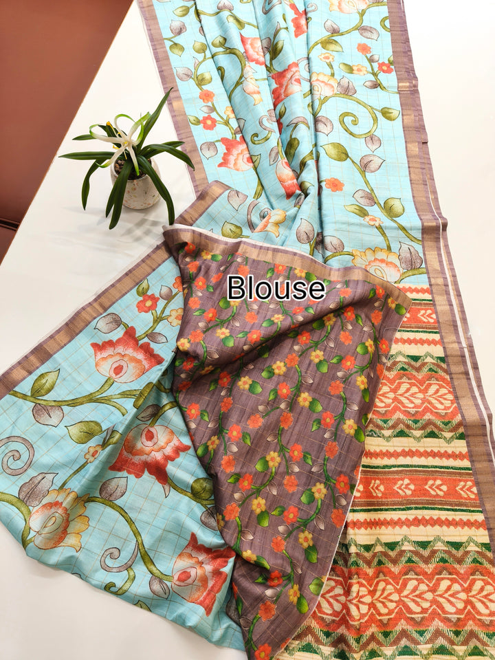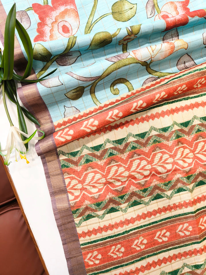 Soft Tussar Checks Silk Saree 101 - FIROZI