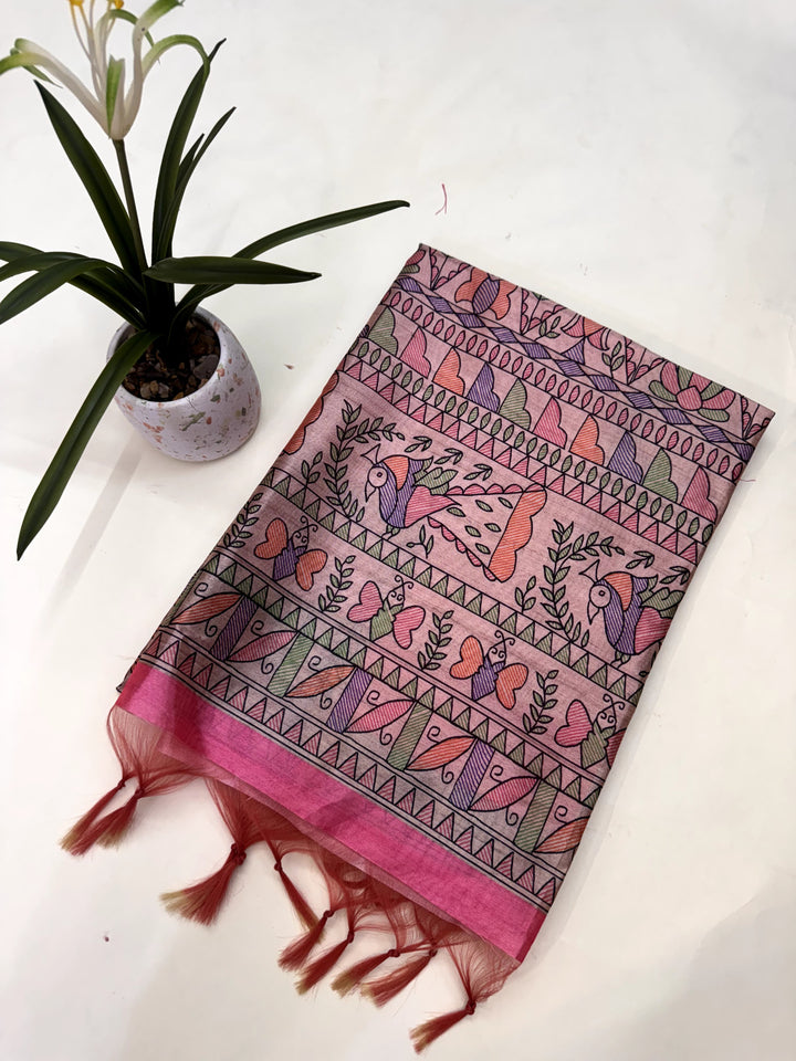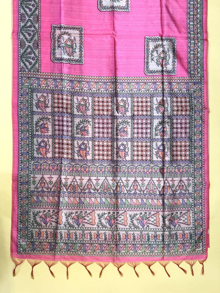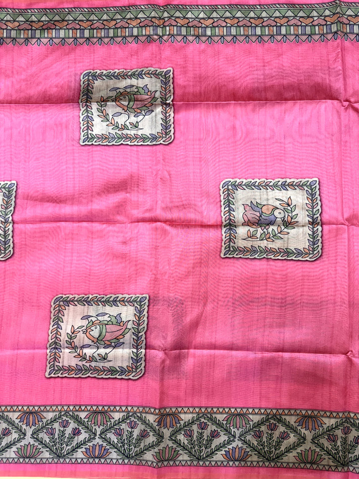 Tussar Silk Madhubani 102 - PINK