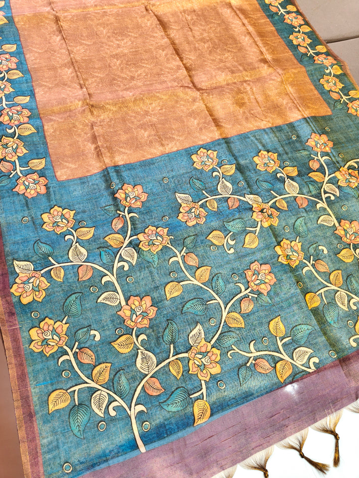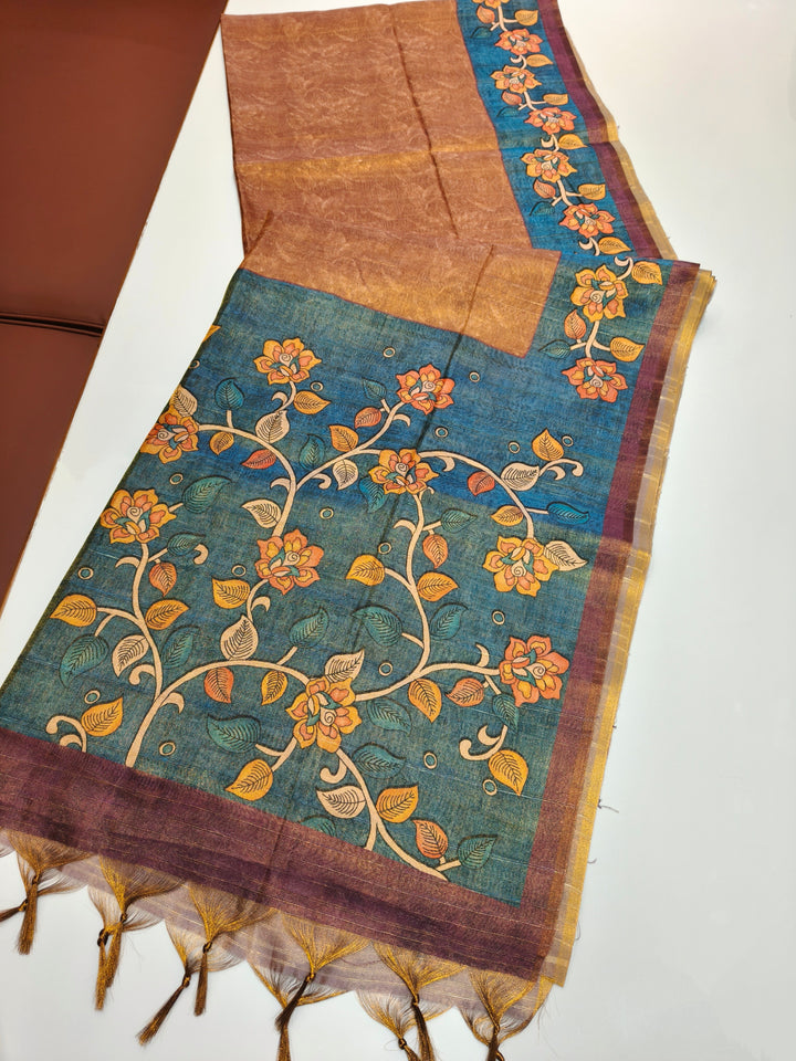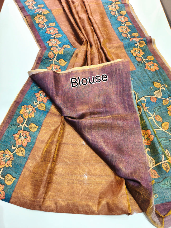 Tissue Tussar Zari Flower Pallu Saree - COFFEE