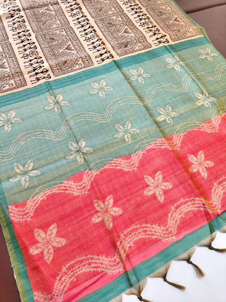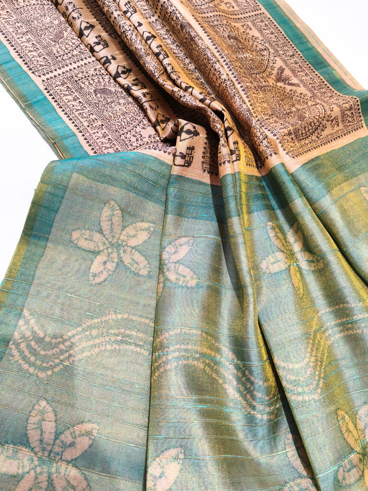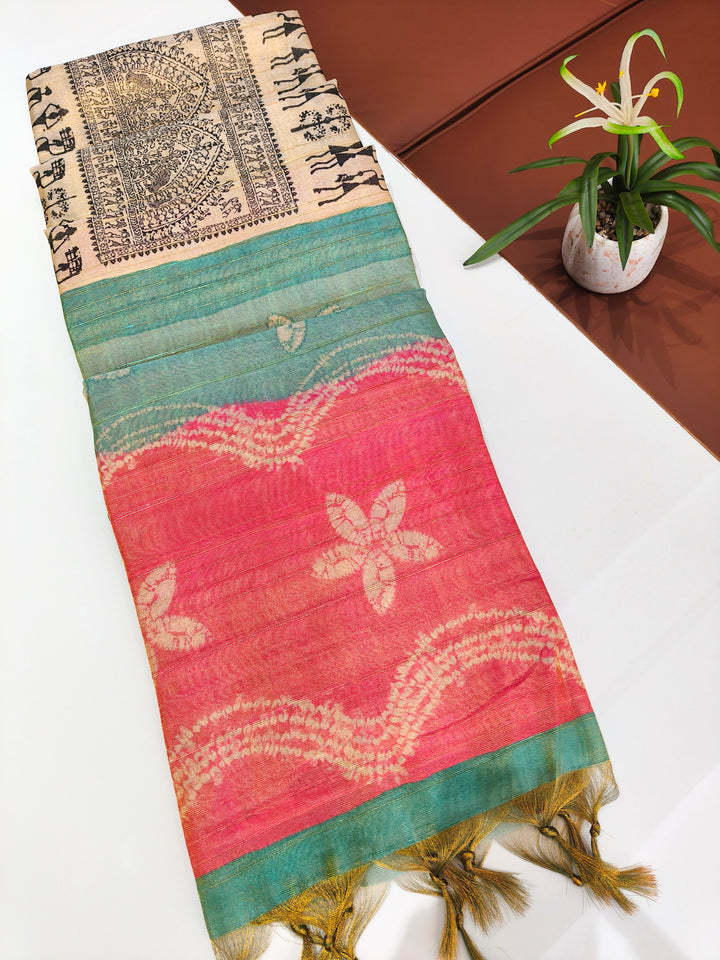 Tissue Zari Saree With Print Warli - SKY-PINK