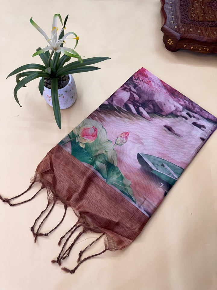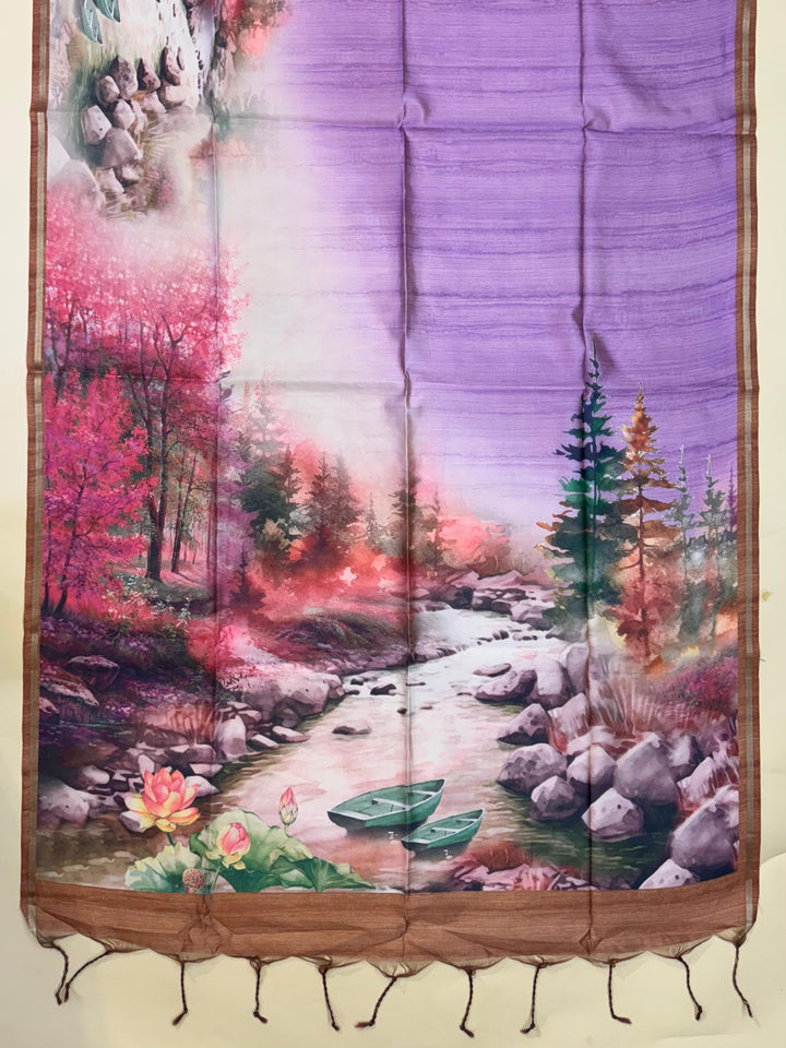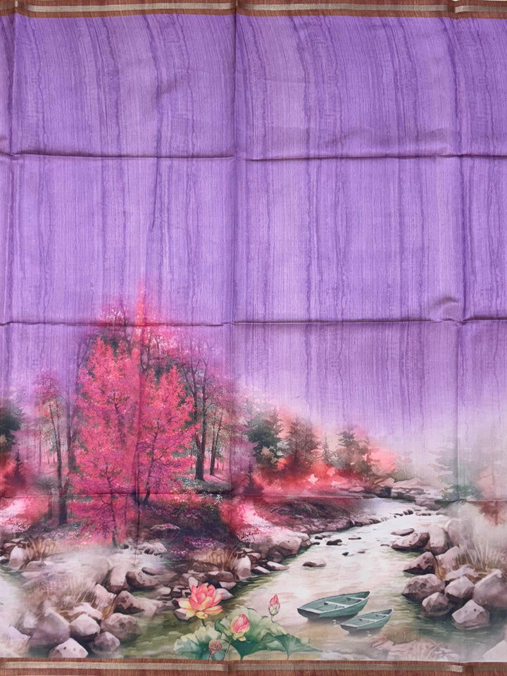 Mallai Silk Beautiful Printed Saree - PURPLE