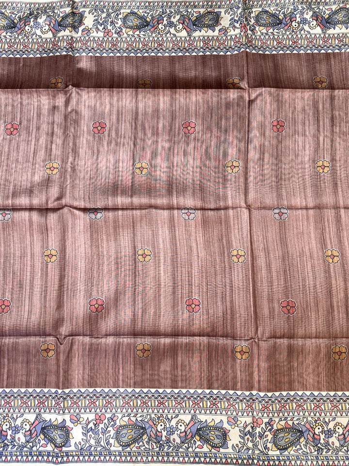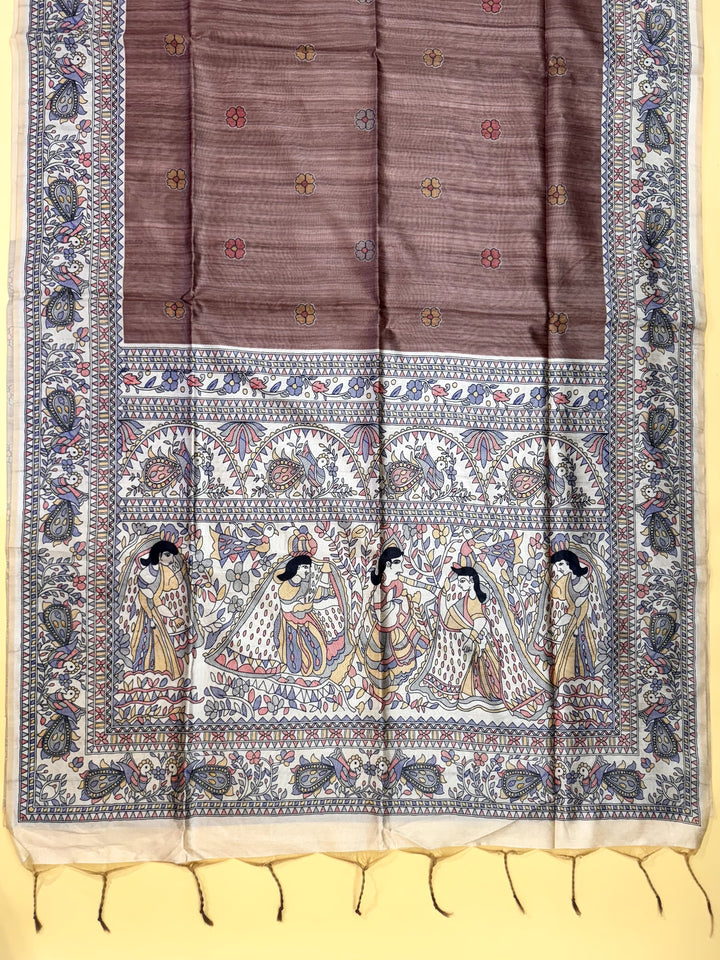 COFFEE - Tussar Silk Saree Madhubani Pallu