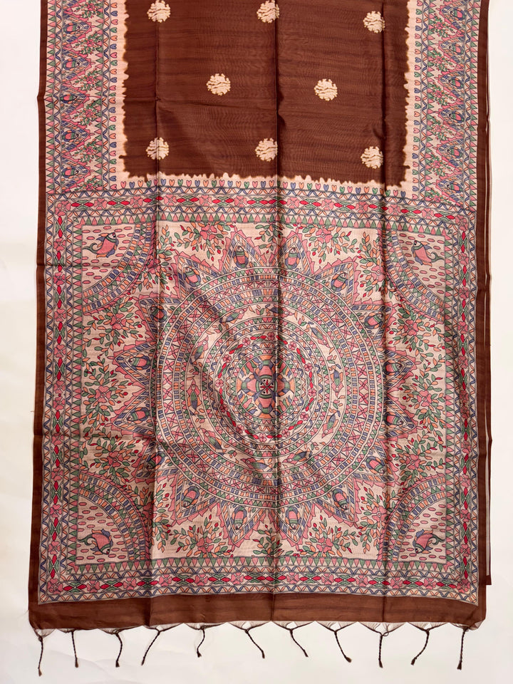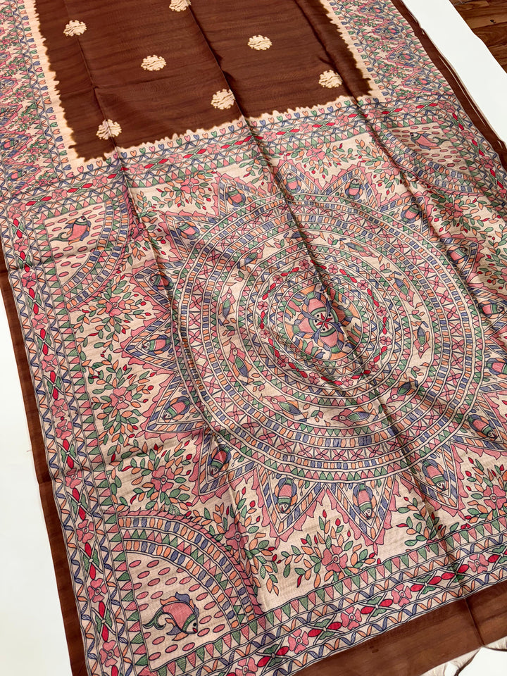 Tussar Silk Madhubani 101 - COFFEE